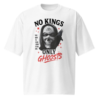 Stand out in the No Kings Only Ghosts graphic t-shirt, featuring a bold skull and raven design with all-seeing eye detail. Perfect for streetwear, gothic fashion, and fans of rebellious style.