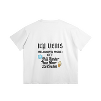 Icy Veins isn't just a phrase—it's a whole vibe. This bold white graphic tee delivers a cool, collected attitude with street-goth energy. Featuring a chill Bart graphic on the front and punchy typography on the back, it’s perfect for those who stay calm under pressure and always bring the drip. Rock it with confidence—meltdown mode stays off.